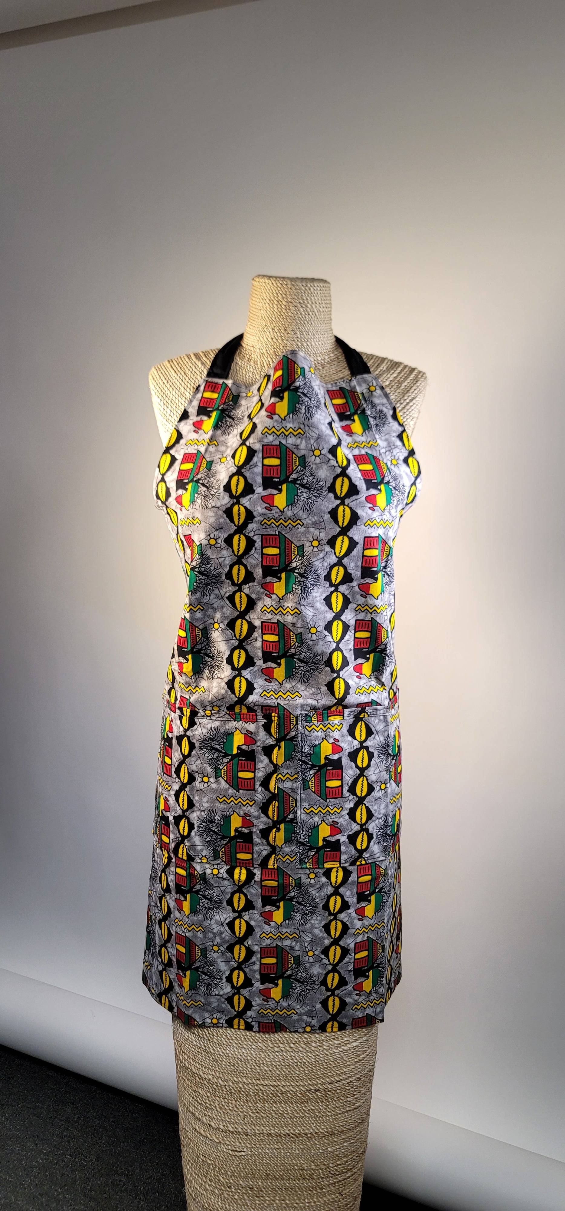 These African Print Aprons add a stylish and colorful touch to your kitchen attire. Made with traditional African print fabric, they are one size fits most and feature convenient pockets and ties. Machine washable for easy care. Perfect for the fashion-forward chef or home cook.