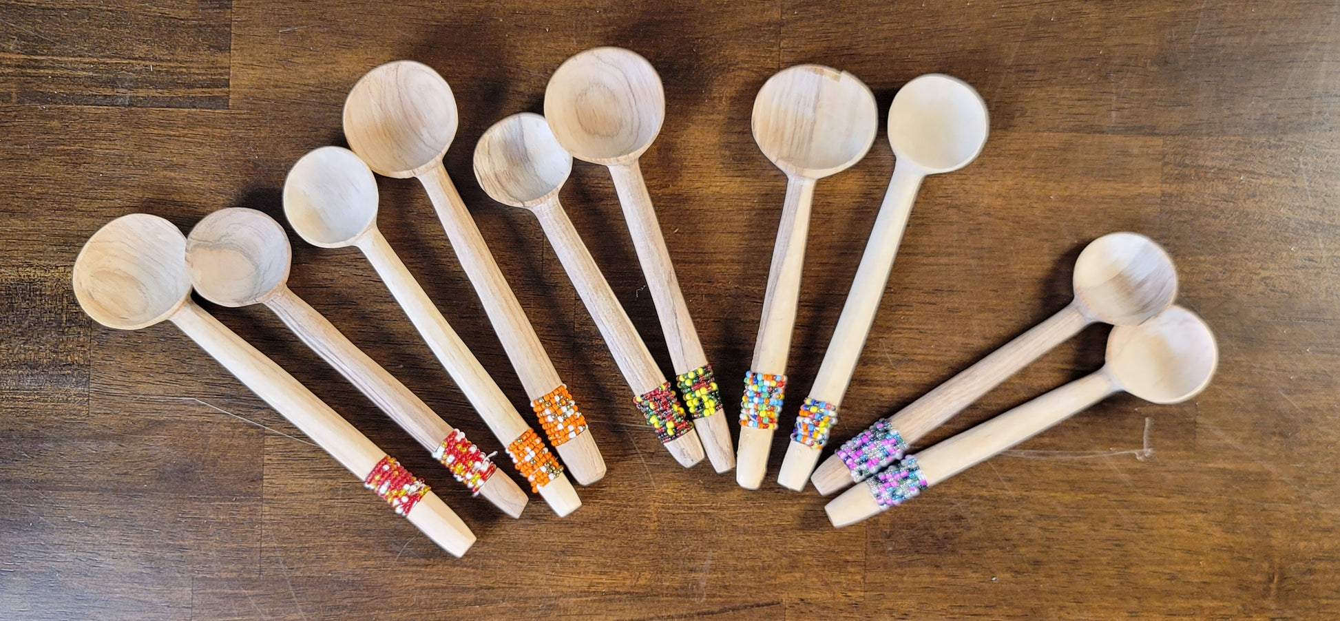 Hand carved and hand beaded Wooden mini spoons with beaded embellishments.