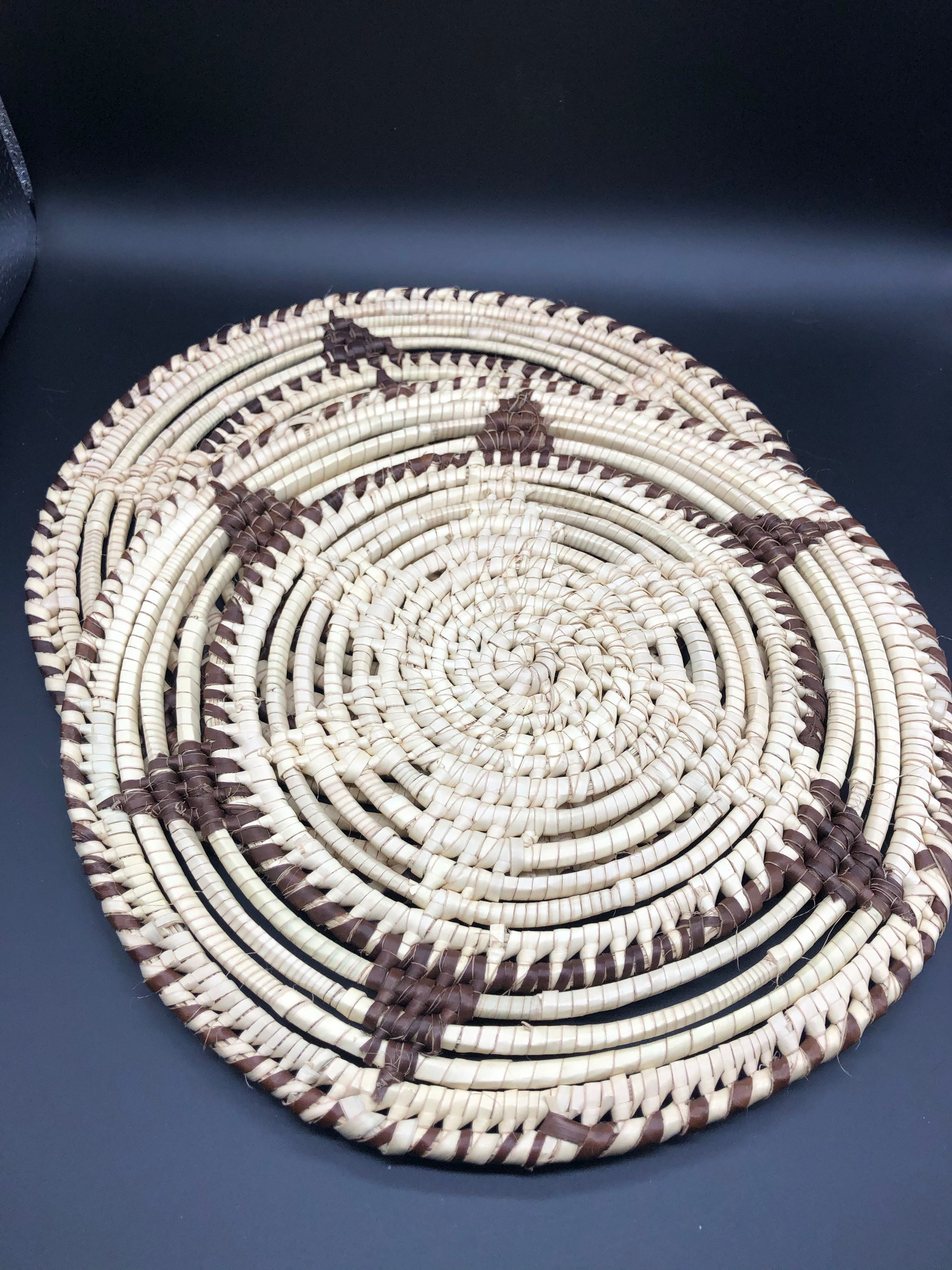 Hand crafted trivet made from papyrus reed grown in Kenya