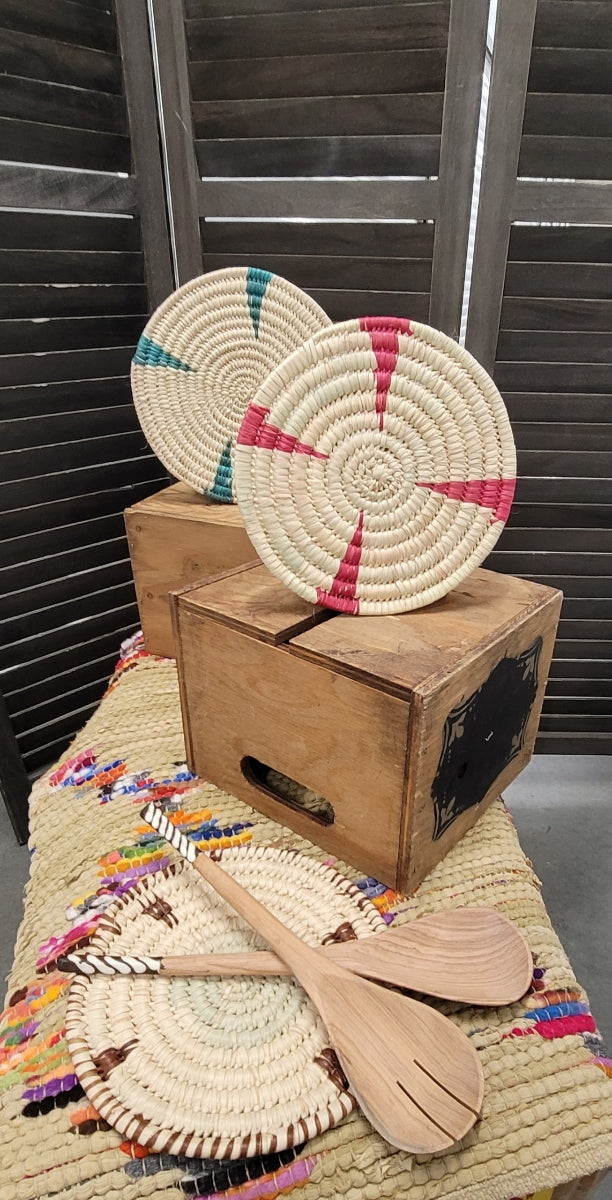 Hand crafted trivet made from papyrus reed grown in Kenya